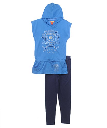 She'll shine in this cute and comfy outfit from Apple Bottoms. Made of soft jersey cotton, the hooded tunic features slit sleeves, a tapered waist with tie accents, pockets on the skirting, and shimmering badge accents with sequin highlights. The matching leggings have an elastic waistband. Tunic 100% Cotton Leggings 95% Cotton, 5% Spandex Machine Wash Warm, Inside Out Made in India