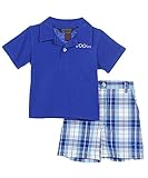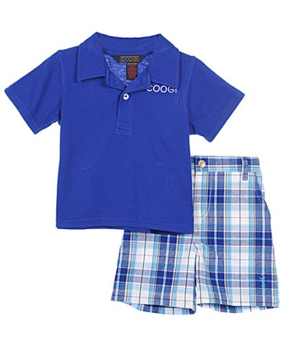 Set his sunny day look on fire with this Coogi 2-piece! The soft knit polo has a contrast collar, striping and logo graphics on the chest, and embroidered accents. The matching twill shorts feature an elastic waistband, front and cargo pockets, and an embroidered "CG" logo. This look's ready for summer - is he? Polo 60% Cotton, 40% Polyester Shorts 100% Cotton Machine Wash Cold, Inside Out Made in Thailand